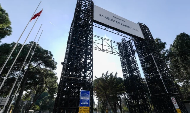 İzmir Büyükşehir Belediyesi, Kültürpark’ın tarihi kapılarından 26 Ağustos Kapısı’nda güçlendirme çalışması yapacak. Türkiye Cumhuriyeti’ni simgeleyen 5 kapı için 2023 yılında ilk adımı atılan restorasyon ve rekonstrüksiyon çalışmaları kapsamında Lozan, Montrö, 9 Eylül ve Cumhuriyet kapıları yenilenerek hem sağlamlaştırıldı hem de görsel açıdan yenilendi.