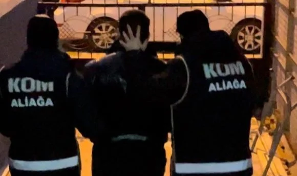 Organize Suçlarla Mücadele Şube Müdürlüğü Aliağa Organize Büro Amirliği ekipleri, aralarında uyuşturucu madde ticareti ve kullanımı, ruhsatsız silah bulundurma, kasten yaralama, hırsızlık, tehdit, yağma, gasp, cinsel taciz, çocuğun cinsel istismarı, mala zarar verme gibi 41 ayrı suçtan kaydı ve 19 yıl kesinleşmiş hapis cezası olan O.K.'nin ilçede olduğunu belirledi. Uzun süren teknik ve fiziki takibin ardından zanlının yerini tespit eden ekipler, O.K.'yi kıskıvrak yakaladı.