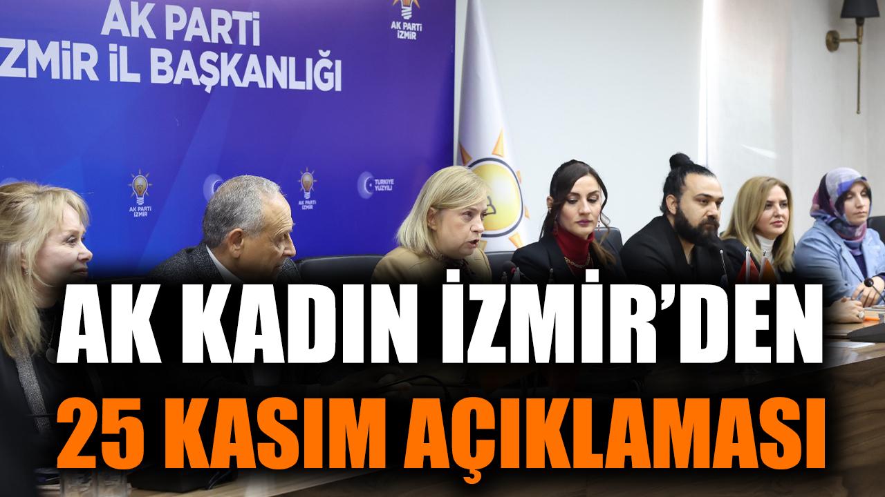 AK Parti İzmir İl Kadın Kolları Başkanlığı, 25 Kasım Kadına Yönelik Şiddete Karşı Uluslararası Mücadele Günü dolayısıyla İl Başkanlığında basın açıklaması geçekleştirdi. İl Kadın Kolları Başkanı Emel Dalkıran yaptığı açıklama, ''Bugün 25 Kasım… kadına yönelik şiddete karşı yükselen kararlılığımızı, dayanışmamızı ve sorumluluk anlayışımızı simgeleyen bir gün. Ancak biz bu mücadeleyi sadece bir günle sınırlamıyoruz. Biz, bu davayı; kadının izzetini, çocuklarımızın geleceğini, ailenin onurunu, milletimizin dirliğini koruma davası olarak görüyoruz.