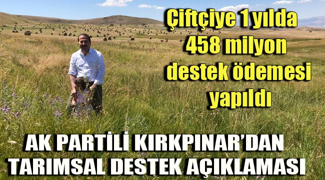 AK Parti İzmir Milletvekili Yaşar Kırkpınar, tarımsal desteklerin ilin veya ilçenin tarımsal potansiyeli, çiftçi sayısı, tarımsal alanı, ürün çeşidi, hayvan sayısı gibi faktörler ile üreticilerin destek için yapmış oldukları başvurulara göre değiştiğini vurguladı.