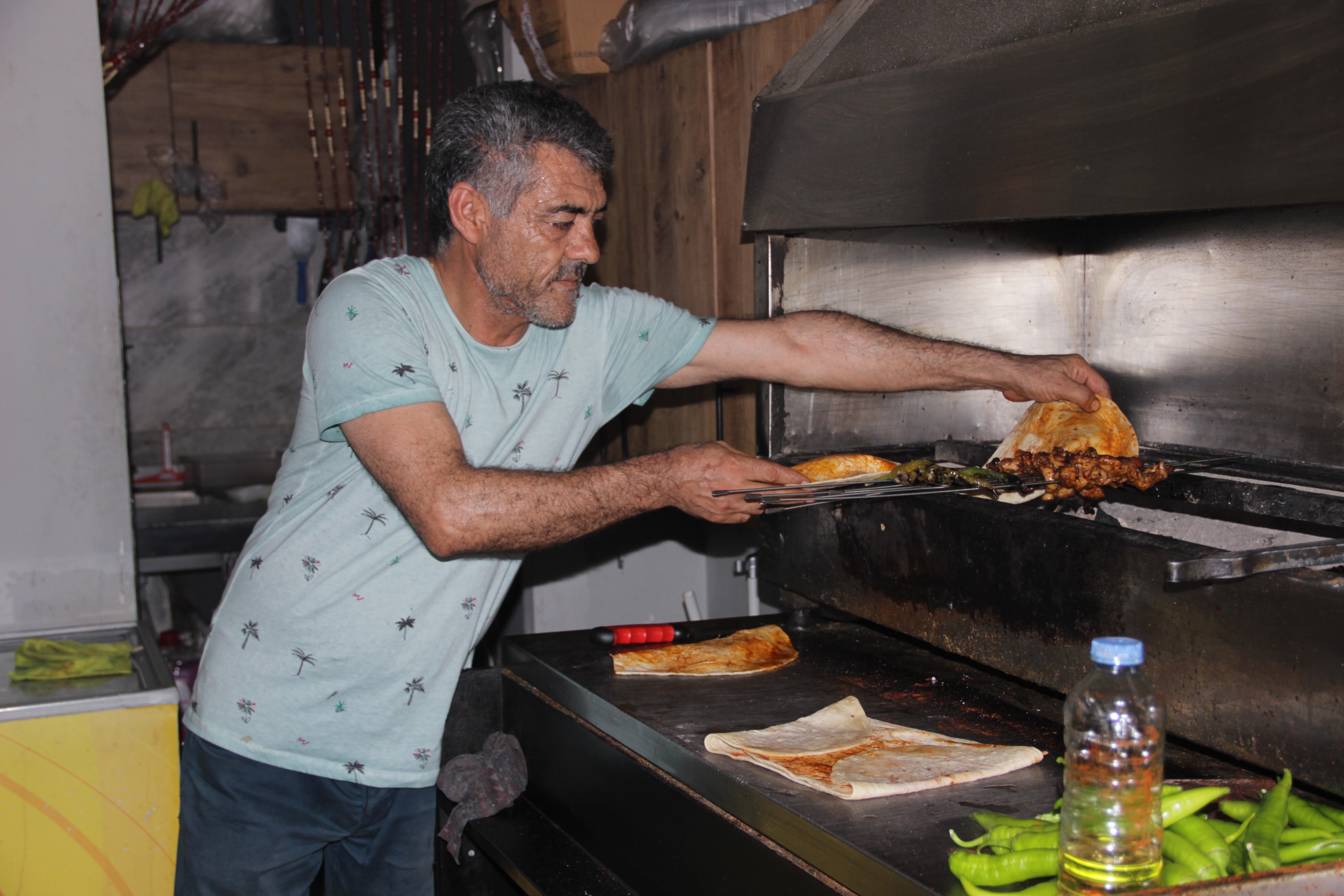 Ocakbaşında çalışan kebap ustası Rüstem Temel ise, "Yazın ocakbaşında çalışmaktan terleyerek kilo veriyoruz. Kavurucu sıcaklardan dolayı ter içinde kalıyoruz, ocakbaşında bazen nefes alamıyoruz. Dışarı çıkıp bakıyoruz resmen asfalt kaynıyor. İçeri giriyoruz, burası da 60 - 65 derece. Allah yardımcımız olsun. Normalde dışarı sıcak havaya çıktığım zaman bile benim için serin oluyor. Boyuna su içiyoruz, içtiğimiz suyun haddi hesabı yok. Vantilatörle serinlemeye çalışıyoruz ama o da sıcak hava üflüyor. Zor şartlarda çalışıyoruz ama mecburuz" açıklamasında bulundu.