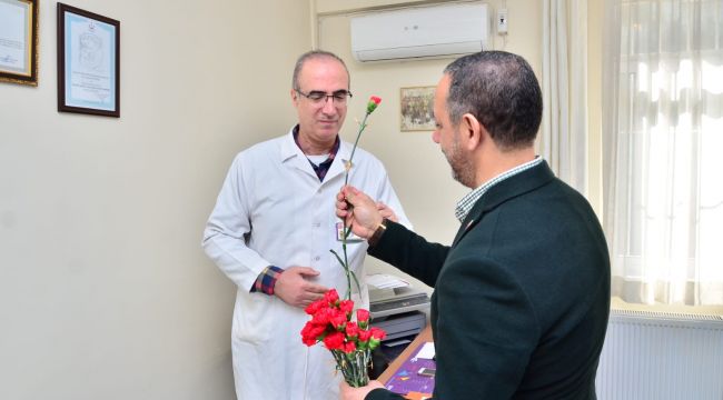 Tıp Bayramı olmasına rağmen sağlık çalışanlarının görev başında olduğunun altını çizen Aslan “Gecesini gündüzüne katarak halkın sağlığı için çalışan tüm sağlıkçılarımızın 14 Mart Tıp Bayramını kutluyorum. Bugün Tıp Bayramı ancak sağlık personelimiz hala görevlerinin başında. Bizde bu özel günlerinde sağlık emekçilerimizin ve doktorlarımızın yanında olduğumuzu belirtmek istedik. Eğer vatandaşlarımız 31 Mart'ta kendilerine hizmet etme şansı verir işbaşına gelirsek, belediye olarak her türlü imkanları paylaşarak, konuşarak, destek olarak sağlık çalışanlarımızın yanında olacağız.” Diyerek sözlerini tamamladı.