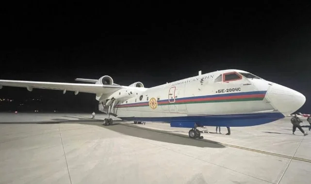 Azerbaycan, Türkiye’de devam eden orman yangınlarının söndürülmesi için harekete geçti. Türkiye'nin yangınla mücadelesine destek olmak amacıyla dün gece gönderilen BE-200ÇS amfibi uçağı İzmir Adnan Menderes Havalimanı'na iniş yaptı.