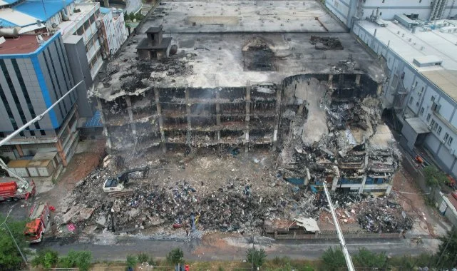 Başakşehir İkitelli Organize Sanayi Bölgesi Eski Turgut Özal Caddesi'nde 6 katlı bir iş hanında 10 Haziran Cumartesi saat 16.30'da yangın çıkmıştı. Kısa süre içerisinde büyüyen alevler diğer katlara sıçramıştı. 3'üncü gününde kontrol alına alınan yangın da soğutma çalışmaları devam ediyor. Bugün çekilen drone görüntüsü ile binanın son hali gözler önüne serildi.