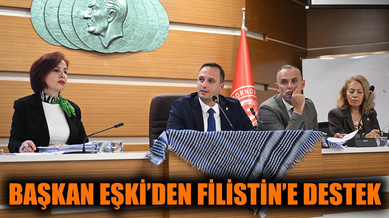 Bornova Belediyesi’nin Ekim Ayı Olağan Meclis Toplantısı 1. Oturumu, Nevzat Kavalar Kültür Merkezi Meclis Salonu’nda yapıldı. Toplantının açılışında Bornova Belediye Başkanı Ömer Eşki, Filistin halkına destek amacıyla, Filistin Kurtuluş Örgütü lideri ve Filistin Ulusal Yönetimi’nin ilk başkanı Yaser Arafat’ın simgesi haline gelen poşusunu meclis kürsüsüne astı.