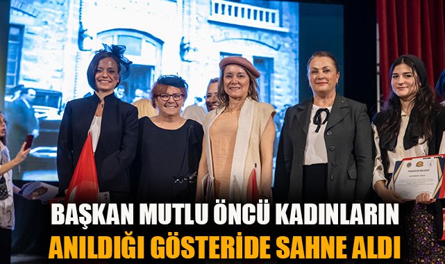 Konak’taki Elhamra Sahnesi’nde gerçekleşen görkemli gecede, Başkan Mutlu’nun yanı sıra aralarında Karabağlar Belediye Başkanı Helil Kınay, İzmir Kent Konseyi Başkanı Nilay Kökkılınç, İzmir Kent Konseyi Kadın Meclisi Başkanı Canan Aydemir Özkara, Tülay Aktaş Gönüllü Kuruluşlar Güç Birliği Başkanı Fatoş Dayıoğlu, İzmir Kadın Kuruluşları Birliği Başkanı Gülsen Özkan, Uluslararası Lions Dernekleri 118 R Yönetim Çevresi Genel Yönetmeni Lion Prof. Dr. Buket Aksu’nun da bulunduğu 24 kadın, ilkleri başaran kadınları sahnede canlandırdı. Araştırmacı yazar İlknur Güntürkün Kalıpçı’nın geçmişe zaman yolculuğu yaptıran sunumu eşliğinde sahneye çıkan İzmirli kadınların gösterisi duygu dolu anların yaşanmasına da neden oldu.