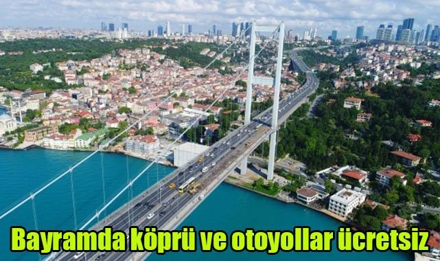 Ekli karara göre, Kurban Bayramı tatili nedeniyle, 24 Haziran Cumartesi günü saat 00.00'dan 3 Temmuz Pazartesi günü saat 07.00'ye kadar yap-işlet-devret projeleri hariç olmak üzere Karayolları Genel Müdürlüğü sorumluluğu altında bulunan otoyollar ile 15 Temmuz Şehitler Köprüsü ve Fatih Sultan Mehmet köprüsü ücretsiz olacak.