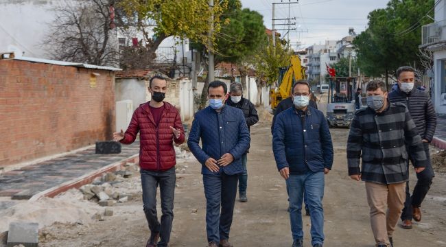 kaldırım düzenlemesi ve aydınlatma çalışmalarını yerinde inceleyen