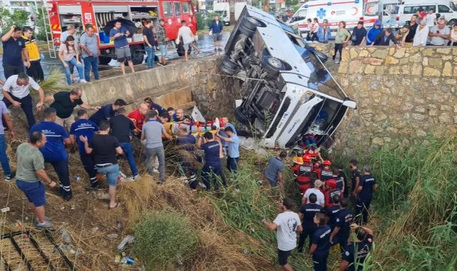 Kaldırımı aşıp dere yatağına devrilen midibüsteki 23 yolcu yaralandı. İhbarın ardından kaza yerine ambulans, itfaiye ve polis ekipleri sevk edildi. Midibüs dere yatağına tamamen düşmemesi için halatlarla ağaca bağlandı. Yaralılar, ekiplerce ambulanslara alınarak hastaneye kaldırıldı.
