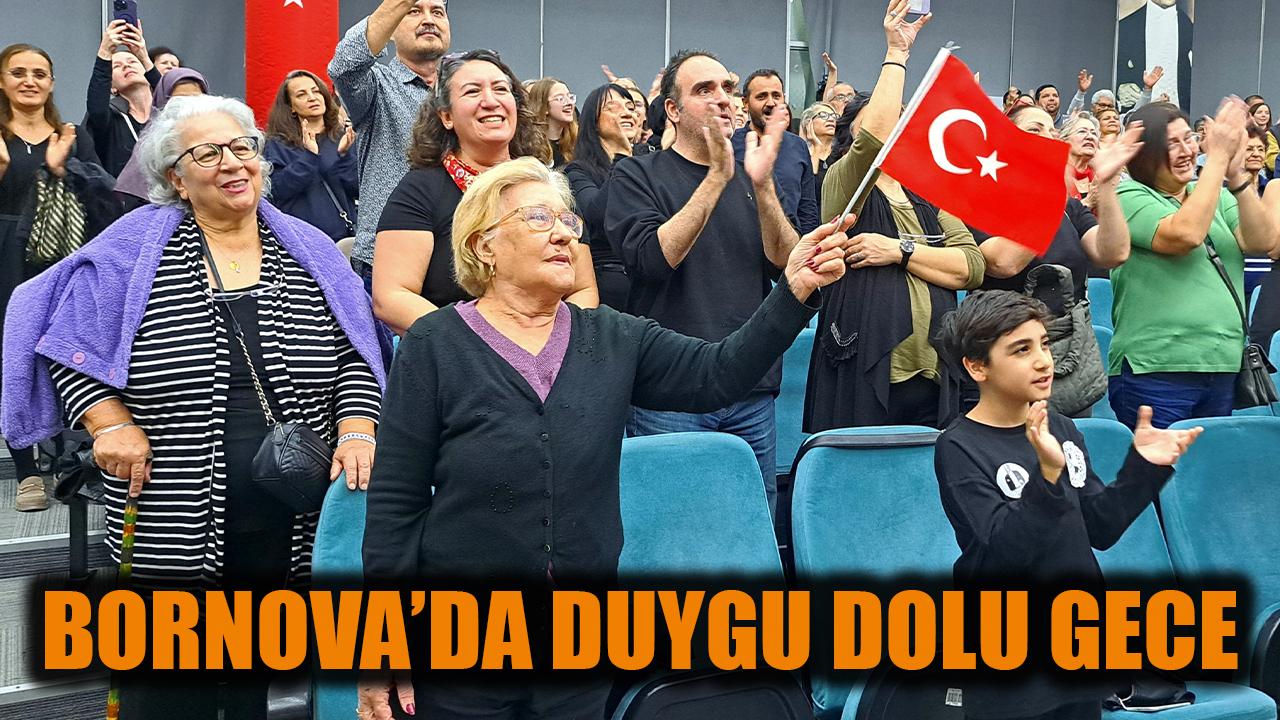 Salonu dolduran Bornovalılar, şarkılara, türkülere ve marşlara büyük bir coşkuyla katıldı. Hem hüzün hem de gururun bir arada yaşandığı gecenin finalinde hep birlikte söylenen “Parla” marşı, salonda duygusal anlara sahne oldu.