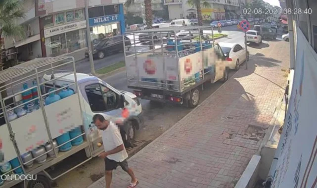 Bayinin önüne kısa süreliğine park edilen tüp yüklü kamyonetin sürücüsü, geri döndüğünde cep telefonunun yerinde olmadığını gördü. Hemen iş yerine geri dönen sürücü, iş yeri sahibiyle birlikte güvenlik kamerasını izlediğinde telefonunun açık camdan alındığını fark etti. Görüntülerde, sırt çantalı ve şortlu bir şahsın, elindeki elmayı yiye yiye araç çevresinde keşif yaptığı, açık camdan cep telefonunu alıp çantasına koyduktan sonra uzaklaştığı anlar yer aldı.
