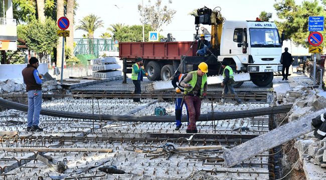 İZSU ekipleri Mithatpaşa Caddesi üzerinden Mustafa Kemal Sahil Bulvarı’na çıkıştaki 19/1 Sokak’ta çelik ızgaraları söktü. Hat üzerine prefabrik kirişler koyuldu ve betonarme imalatına başlandı. 95 metrelik çalışma güzergahının 48 metrelik bölüme beton döküldü.