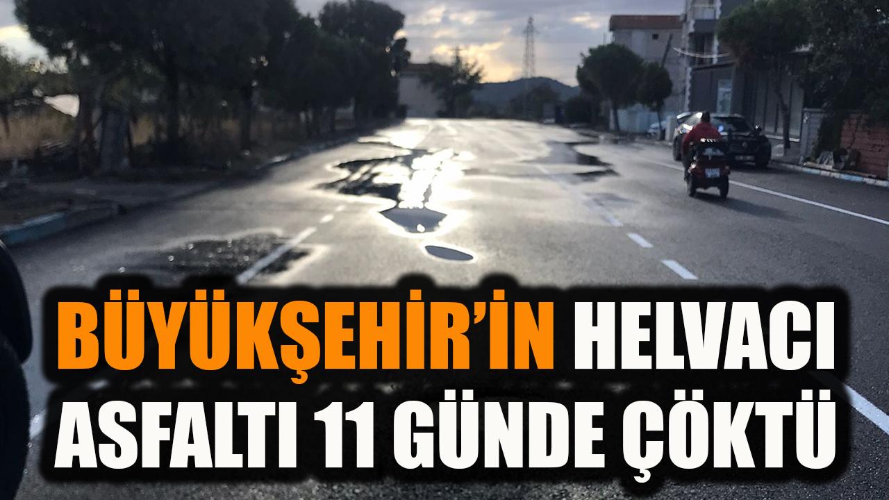İzmir Büyükşehir Belediyesi’nin 27 Eylül 2025 tarihinde “Helvacı Mahallesi’ne iki kilometrelik asfalt” başlığıyla kamuoyuna duyurduğu yol çalışması kısa sürede çöktü. Büyükşehir ekiplerince asfaltlanan yol, yalnızca 11 gün içinde çukurlarla dolarak adeta köstebek yuvasına döndü. 11 günde eski haline dönen yol sürücülere de zor anlar yaşatıyor. Araçların zarar gördüğünü ve kaza riskinin artması vatandaşları endişelendirdi.