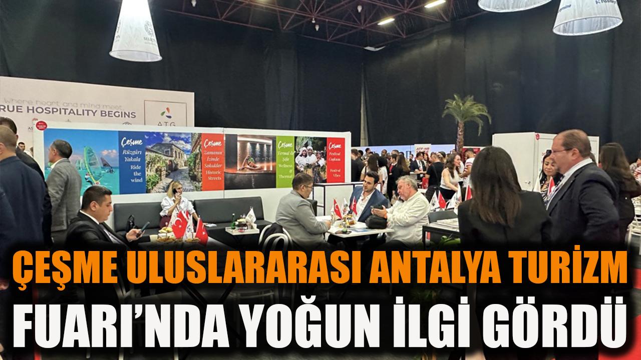 Bu yıl yedincisi düzenlenen Uluslararası Antalya Turizm Fuarı, 22-24 Ekim tarihleri arasında Antalya Uluslararası Fuar Merkezi’nde gerçekleştirildi. Türkiye’nin dört bir yanından belediyeler, dünyanın dört bir yanından turizm birlikleri, acenteler ve sektör temsilcilerinin katıldığı fuarda, Çeşme’nin doğal güzellikleri, gastronomi zenginliği, kültürel mirası ve alternatif turizm olanakları ön plana çıkarıldı.