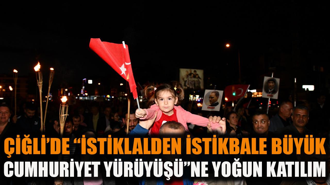 Yüzlerce Çiğlili, ellerinde Türk bayraklarıyla ve Atatürk posterleri ile kenti kırmızı-beyaz renklere bürüdü. Cumhuriyet marşlarının hep bir ağızdan söylendiği yürüyüşte, evlerinin balkonlarından alkışlarla ve araçlarının kornalarıyla destek veren vatandaşlar da coşkuya ortak oldu. Etkinliğe yüzlerce vatandaşın yanı sıra Çiğli Belediye Başkanı Onur Emrah Yıldız ve eşi Gamze Yıldız, CHP Çiğli İlçe Başkanı Erkan Akar ve yönetimi, ilçe gençlik ve kadın kolları, meclis üyeleri, muhtarlar, sporcular, kursiyerler ve izciler katıldı.