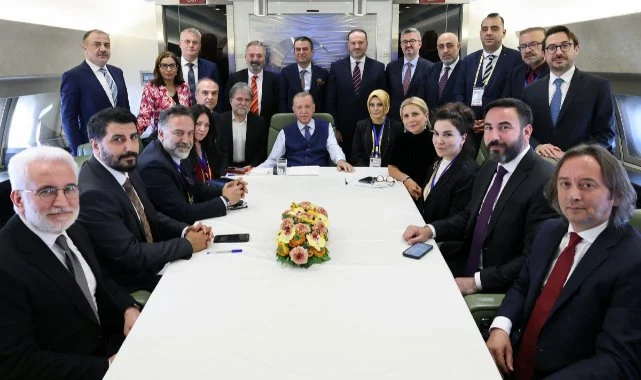 Cumhurbaşkanı Recep Tayyip Erdoğan, Kuzey Kıbrıs Türk Cumhuriyeti ve Azerbaycan ziyaretleri dönüşünde uçakta gazetecilerle söyleşi gerçekleştirdi. 14 Mayıs ve 28 Mayıs seçimlerinin ardından Kuzey Kıbrıs Türk Cumhuriyeti ve Azerbaycan'a düzenledikleri ilk resmi ziyaretleri tamamladıklarını belirten Cumhurbaşkanı Erdoğan, ziyaretlerinde KKTC Cumhurbaşkanı Ersin Tatar ve Azerbaycan Cumhurbaşkanı İlham Aliyev'le ikili ve heyetler arası olmak üzere verimli görüşmeler gerçekleştirdiklerini aktardı. Kuzey Kıbrıs Türk Cumhuriyeti'nde iki ülke arasındaki güçlü bağların altını tekrar çizmiş olduklarını ifade eden Cumhurbaşkanı Erdoğan, ”İkili gündemimizde yer alan konuları ve Kıbrıs meselesine dair son durumu değerlendirdik. Maruz kaldıkları onca haksız, hukuksuz ambargoya rağmen, Kıbrıs Türkü kardeşlerimize devlet hizmetlerinin rahatlıkla sunulabilmesi noktasında yürüttüğümüz ortak çalışmaları ele aldık. Kuzey Kıbrıs Türk Cumhuriyeti'nin Doğu Akdeniz'de bir çekim merkezi haline getirilmesi yönünde attığımız ve atacağımız adımları mütalaa ettik” açıklamasını yaptı.