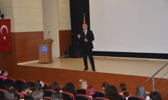 Prof. Dr. Gültekin, “Fakültemizle eş güdümlü olarak çalışan, sizlerin uygulama alanı olan Medya Uygulama ve Araştırma Merkezimiz bünyesinde Ege Ajans’ın, Ege Üniversitesi Televizyonu’nun ve Radyo Ege Kampüs’ün kapıları sizlere sonuna kadar açık. Bu birimlerimizden mutlaka faydalanın. Bunun dışında üniversitemizin en güçlü yönlerinden birisi de öğrenci kulüpleri. Bu kulüplere katılım gösterin. Öğrenci değişim programlarımızı ve çift anadal fırsatlarımızı da takip edin. Geçen yıl başlattığımız bir staj seferberliğimiz var. Staj yeri bulma konusunda sıkıntı yaşayan öğrencilerimize de bu kapsamda yardımcı oluyoruz” diye konuştu.