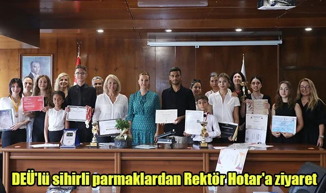 DEÜ’de eğitim-öğretim hayatlarını sürdüren ve birçok yarışmada önemli dereceler elde eden öğrenciler, ziyaret esnasında elde ettikleri madalya ve kupalar hakkında Rektör Hotar'a bilgi verdi. Öğrencilerle tek tek sohbet eden Rektör Hotar, “Avrupa ülkeleri başta olmak üzere farklı ülkelerde düzenlenen prestijli müzik yarışmalarında önemli dereceler elde eden öğrencilerimizin başarılarıyla gurur duyuyoruz. Öğrencilerimizi ve onları yetiştiren hocalarımızı yürekten kutluyor, başarılarının devamını diliyoruz” ifadelerini kullandı. Öğrencilerin önemli başarılar elde ettikleri yarışmalar arasında; Uluslararası Viyana Mozart Yarışması, İstanbul Pera Uluslararası Piyano Yarışması, Birmingham ve Londra Uluslararası Müzik yarışmaları dikkat çekiyor.