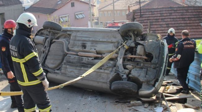 Kocaeli’nin İzmit ilçesinde yokuş aşağıya inerken kontrolden çıkarak yan yatan otomobilin sürücüsü, araçtan burnu bile kanamadan kurtuldu.