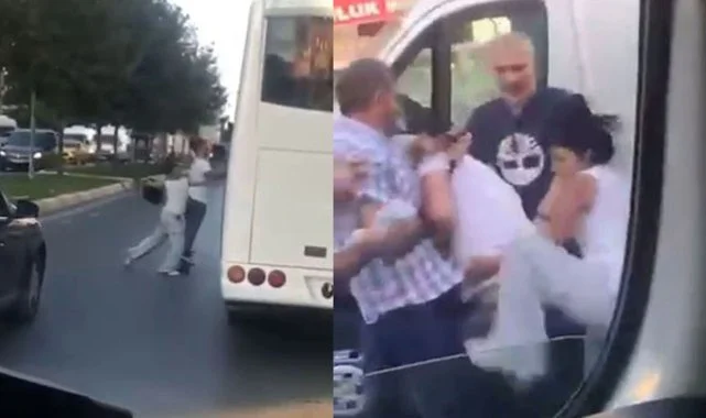 Olay, dün akşam saatlerinde Esenyurt Bağlarçeşme Mahallesi Ahmet Arif Caddesi üzerinde meydana geldi. İddiaya göre, servis aracı yol verme tartışması nedeniyle caddede ilerleyen motosikletli çifti trafikte sıkıştırdı. Servis şoförü motosikletli sürücüye yol vermemek için aracını motosikletin üzerine sürdü. Servis aracına sinirlenen motosikletin arkasındaki kadın, motosikletten atlayıp kask ile servis aracına saldırdı. O anlar çevredeki bir vatandaşın cep telefonu ile görüntülendi. Görüntülerde, motosikletliyi sıkıştıran servis aracının o anları ve motosikletli kadının kaskla servise vurduğu anlar yer aldı. Servis aracının şoförünün de demir çubukla aşağı inmesiyle kavgaya tutuşan taraflar çevredeki vatandaşların araya girmesiyle güçlükle ayrıldı.