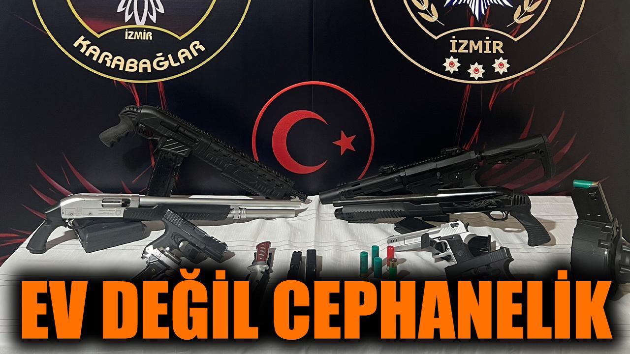 Karabağlar İlçe Emniyet Müdürlüğü Suç Önleme ve Soruşturma Büro Amirliği'ne bağlı ekipler tarafından, çok sayıda silah barındırdıkları belirlenen G.T., B.H. ve M.F. ile ilgili detaylı analiz çalışmaları yürütüldü. Çalışmalar sonucunda şüphelilerin Karabağlar ve Konak ilçelerinde kayıt dışı kaldıkları adresler tespit edildi. Belirlenen adreslere düzenlenen eş zamanlı operasyonda; 3 adet ruhsatsız tabanca, 4 adet pompalı tüfek, 1 adet kurusıkı tabanca, 3 şarjör, 3 adet pompalı tüfek şarjörü, 1 adet tambur şarjör, 2 adet sürgü, 8 adet 7.65 mm fişek, 6 adet tüfek kartuşu ile 1 adet kama ele geçirildi. Operasyonda ayrıca uyuşturucu maddeye de rastlanırken, bir miktar metamfetamin maddesi ele geçirildi.