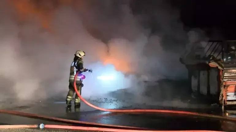 Eyüpsultan’da bir lastik deposunda yangın çıktı. Yangın, ekiplerin yaklaşık 2 saatlik çalışması sonucunda söndürüldü.