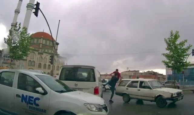Sultangazi'de yasak olmasına rağmen U dönüşü yapan bir sürücüyle karşı yöne geçen başka bir sürücü arasında kavga çıktı. Öfkeli sürücü aracından inerek eliyle otomobilin camını kırdı. Diğer sürücü ise otomobilin üzerinden atlayarak kavga ettiği şahsı yumruk yağmuruna tuttu. Kavga anları oradan geçen otomobilin kamerasına yansıdı
