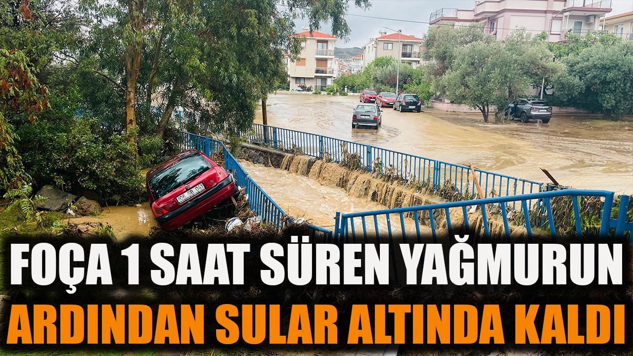 İzmir'in Foça ilçesinde etkili olan sağanak yağış hayatı olumsuz etkiledi. Araçlar sel sularında sürülendi, birçok ev ve iş yerini su bastı.