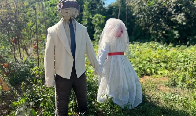 Bilinen korkuluklardan farklı bir görüntüye sahip gelin damat figürlü korkuluk, bugünlerde sosyal medyada oldukça ilgi çekerken figürün tasarımcısı İnci Demirtaş, yaptığı çalışmanın bu kadar beğeni alacağını tahmin etmediğini söyledi.