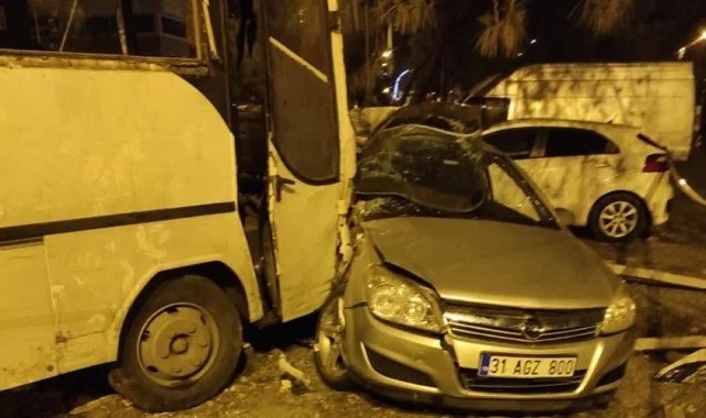 Hatay'da işçi servisi ile otomobil çarpıştı