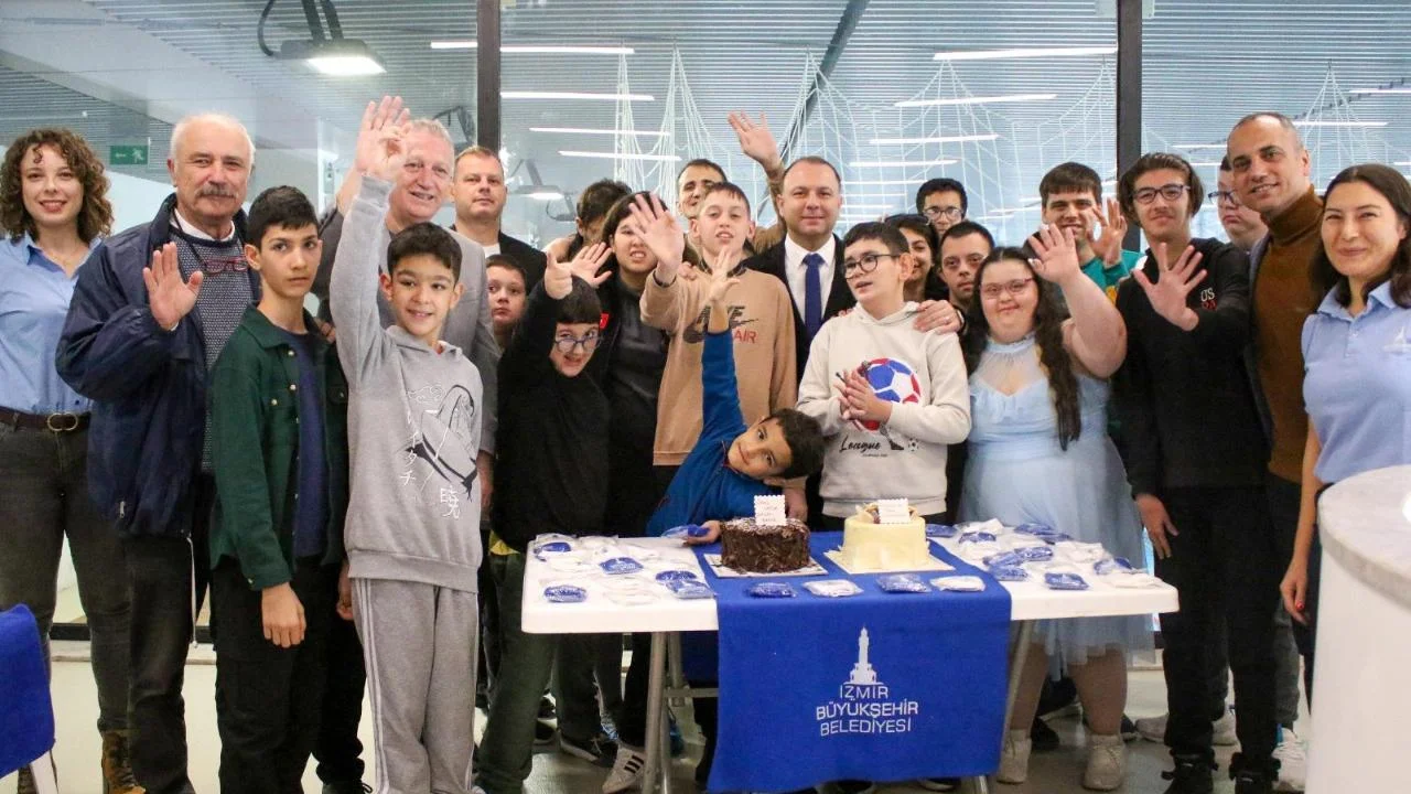 İzmir Büyükşehir Belediyesi’nin üç yıldır kesintisiz sürdürdüğü ve 47 özel gereksinimli kursiyere yüzme eğitimi verdiği “Sevgi Varsa Engel Yoktur, Hep Birlikte Güçlüyüz” projesi, Dünya Engelliler Günü kapsamında düzenlenen anlamlı bir etkinlikle taçlandı. Bornova Aşık Veysel Rekreasyon Alanı’ndaki Havuz İzmir’de gerçekleştirilen organizasyonda, otizmli ve down sendromlu kursiyerler eğitmenler eşliğinde keyifli anlar yaşadı. Etkinliğe Gençlik ve Spor Hizmetleri Daire Başkanı Berkhan Alptekin ile Spor Çalışmaları Şube Müdürü Gürcan Temizel katıldı. Türkiye Butik Pastacılar ve Şeker Hamurcular Derneği Başkanı Emine Kubat tarafından hazırlanan, üzerinde engelli çocuk figürleri bulunan şeker hamuru pastalar büyük bir coşkuyla kesildi. Pasta kesiminin ardından kursiyerlere özel yüzme boneleri dağıtıldı ve şeker hamurundan çiçek yapma etkinliği düzenlendi.