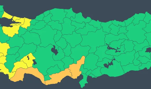 Adana, Antalya ve Mersin turuncu uyarı verilen iller olarak sıralanırken Aydın, Burdur, Bursa, Isparta, İstanbul, İzmir, Kocaeli, Manisa, Muğla, Sakarya ve Yalova'ya ise sarı uyarı verildi.