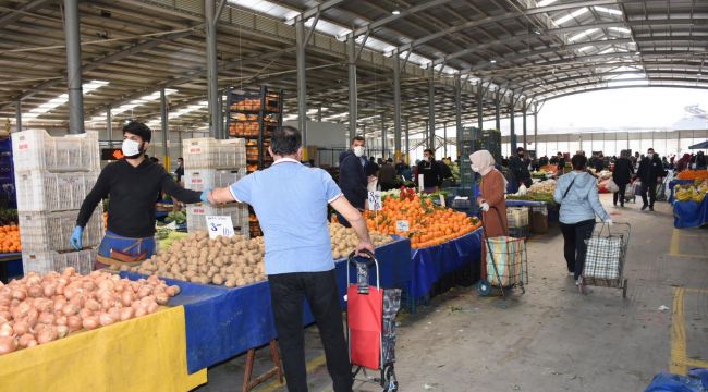 Pazar yerleri dışında marketlere de çok sayıda kişi alışveriş için gitti. Maskesiz olanlar, marketlerden içeri alınmazken, sebze ve meyveler ise eldivensiz ellettirilmedi. Konak'ta bulunan zincir marketin işletmecisi Vahdet Sarıkaya (50), "Sabah bu yoğunluğu bekliyorduk. Personelimiz erken saatlerde gelerek çalışmaya başladı. Dükkanımızın açıldığı ilk saatlerden itibaren yoğunluk mevcut. Özellikle sebzeler daha çok talep görüyor. Yoğun bir şekilde çalışmamız devam ediyor" dedi.