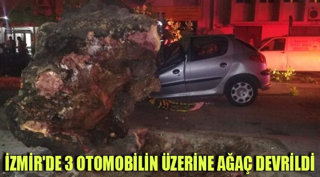 İzmir'in Konak ilçesinde 3 otomobilin üzerine ağaç devrildi. Devrilme esnasında seyir halinde olan otomobilin sürücüsü hafif şekilde yaralandı.
