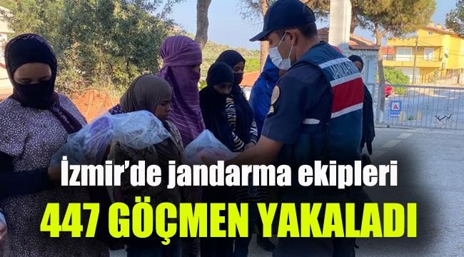 İzmir’in Menderes, Çeşme, Seferihisar, Foça ve Karaburun ilçelerinde jandarma ekipleri, 447 göçmen ve 13 göçmen kaçakçısı şüphelisini yakaladı.