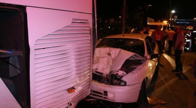 İZMİR'DE KONTROLDEN ÇIKAN OTOMOBİL OTOBÜSE ÇARPTI: 4 YARALI