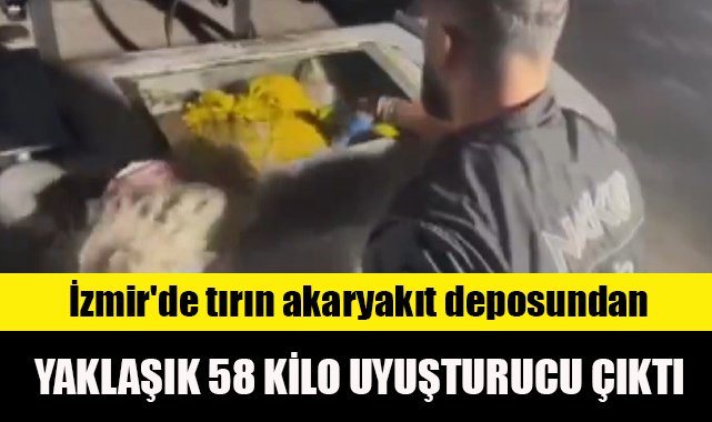 İzmir İl Emniyet Müdürlüğü Narkotik Suçlarla Mücadele Şube Müdürlüğü ekipleri, bir tır içerisinde yüklü miktarda uyuşturucu madde bulunduğu bilgisi üzerine harekete geçti. Tırı durduran ekipler, narkotik köpeğinin akaryakıt deposuna tepki göstermesi üzerine burayı kontrol etti. Yapılan kontrolde akaryakıt deposu içerisinde 57 kilo 900 gram skunk esrar maddesi ele geçirildi.