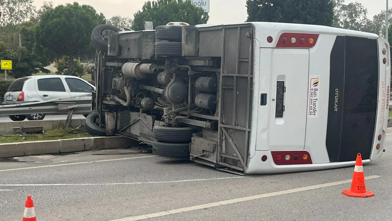 İzmir’de havalimanı personel servisi devrildi