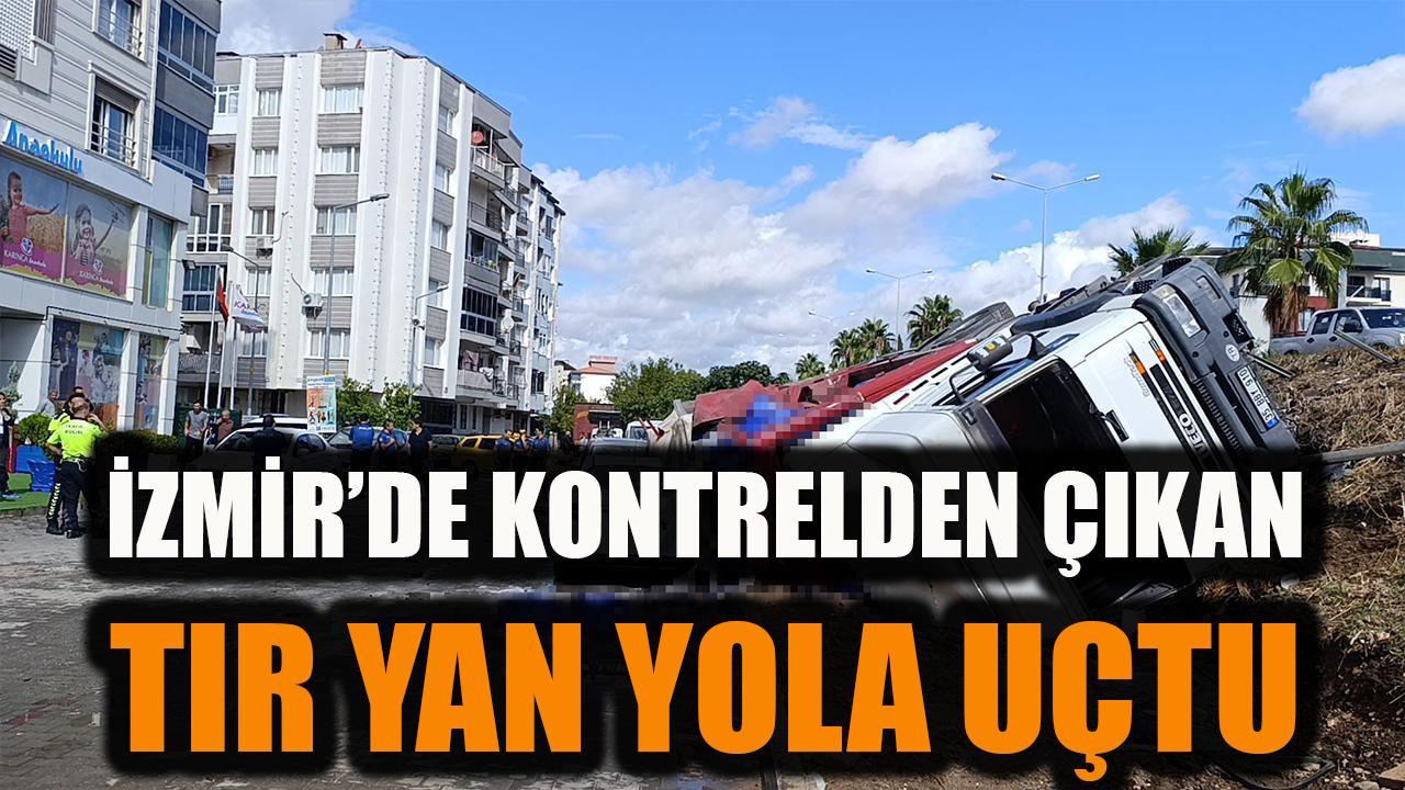 İzmir'de kontrolden çıkan tır yan yola uçtu