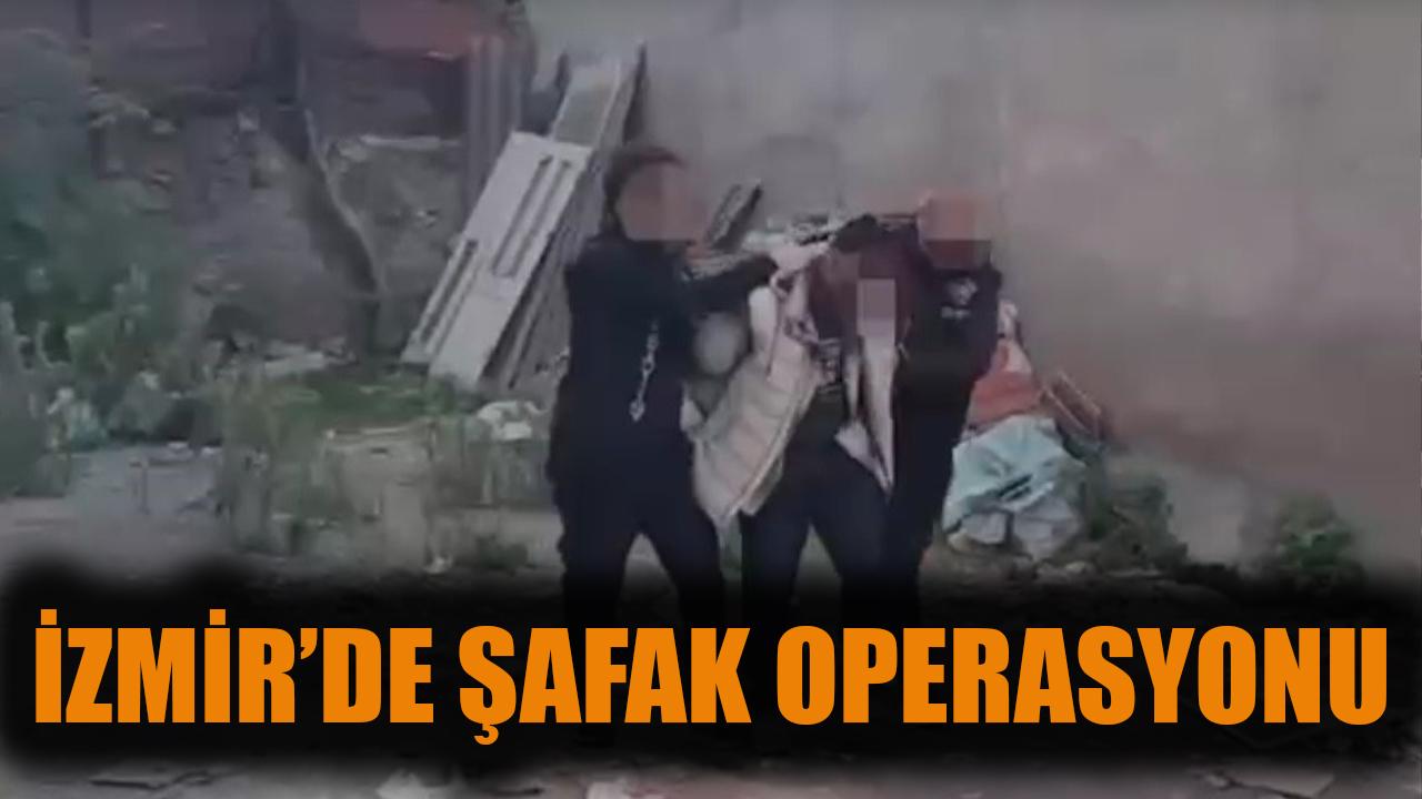İzmir'de polis ekipleri tarafından 97 adrese düzenlenen eş zamanlı şafak operasyonunda çeşitli suçlardan aranan 145 kişi gözaltına alındı.
