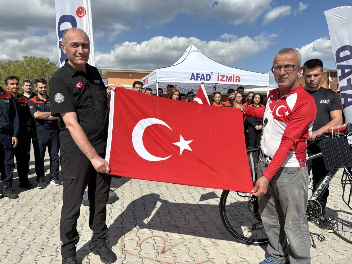İzmir’de yaşayan bisikletli gezgin Orhan Kotluk (47), "Asrın Felaketi" olarak anılan 6 Şubat depremlerine dikkat çekmek amacıyla İzmir’den Kahramanmaraş’a doğru yola çıktı. Yaklaşık 20 yıldır Türkiye’yi bisikletiyle gezen Kotluk, bu anlamlı yolculuğunda bin 350 kilometrelik bir parkuru kat edecek. İzmir İl Afet ve Acil Durum Müdürlüğü’nden teslim aldığı Türk bayrağını Kahramanmaraş Valiliği’ne ulaştırmayı hedefleyen Kotluk, farkındalık oluşturmak için pedal çevirecek. Yolculuğu boyunca İzmir, Manisa, Uşak, Afyonkarahisar, Konya, Aksaray, Nevşehir ve Kayseri illerinden geçecek olan Kotluk, final durağı olan Kahramanmaraş’a ulaşmayı hedefliyor. Vatan için canlarını feda eden aziz şehitlerin anısına 2005 yılından bu yana pedal çevirdiğini belirten Orhan Kotluk, "Şimdiki hedefimiz İzmir'den 6 Şubat 2023'te merkez üssü Pazarcık ve Elbistan olan 7.7 ve 7.6 büyüklüğünde iki depremin merkez üssü Kahramanmaraş’a şanlı bayrağımızı taşımak" dedi.