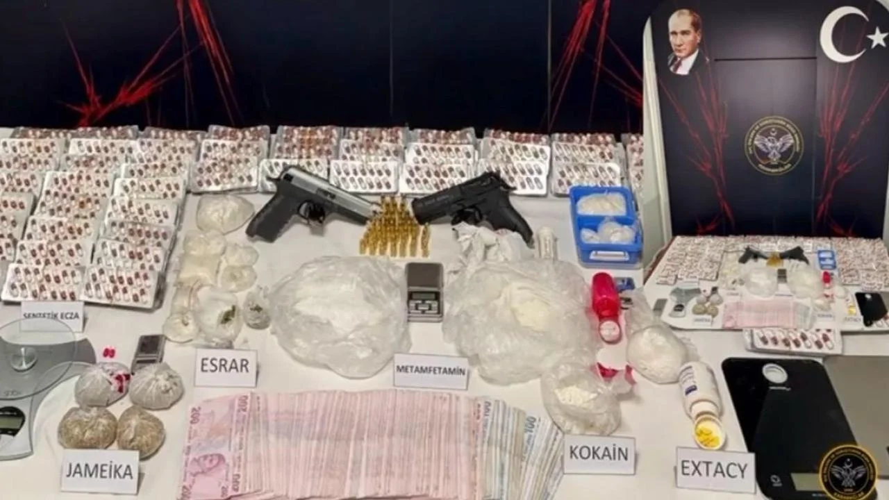 İl Emniyet Müdürlüğü'ne bağlı Suç Önleme ve Soruşturma Büro Amirliği ile Narkotik Suçlarla Mücadele Amirliği ekipleri tarafından uyuşturucuya yönelik ortak bir operasyon gerçekleştirildi. Operasyon kapsamında E.B. (31) isimli şüpheli takibe alındı. Şahsın Karabağlar ilçesindeki ikametinde dışarıyı izleyen çok sayıda güvenlik kamerası bulunduğu belirlendi. E.B.'nin evde olmadığı anı tespit eden ekipler, adrese operasyon düzenledi. Evde yapılan aramalarda 1 kilo 273 gram metamfetamin, 3 bin 890 adet sentetik hap, 20 adet ekstazi hap, 191 gram kokain, 100 gram Jamaika, 5 gram esrar, 2 tabanca, 43 fişek, 7 hassas terazi ve 53 bin 600 Türk lirası ele geçirildi.