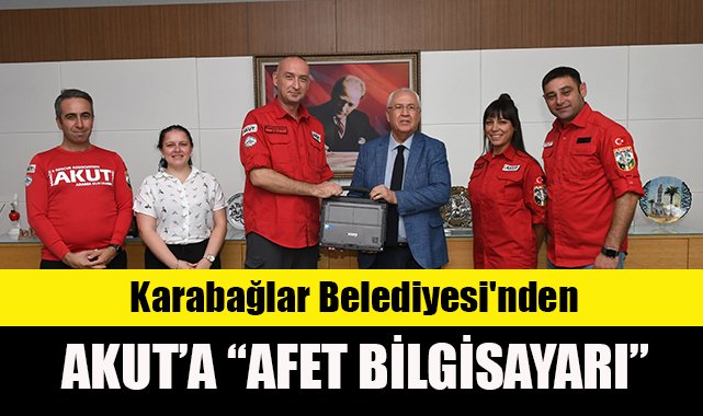 Karabağlar Belediyesi, Türkiye'nin en büyük yerleşkesini tahsis ettiği ve sürekli destek verdiği Arama Kurtarma Derneği'ne (AKUT), son olarak acil durumlarda kullanılmak üzere “afet bilgisayarı” satın aldı. Özel yapım bilgisayarı AKUT İzmir Ekip Lideri Ramazan Ergut ve gönüllülere teslim eden Karabağlar Belediye Başkanı Muhittin Selvitopu, “Umarım bu bilgisayar kullanılarak nice canlar kurtarılır. Hepinize ayrı ayrı teşekkür ediyor ve başarılar diliyorum” dedi.