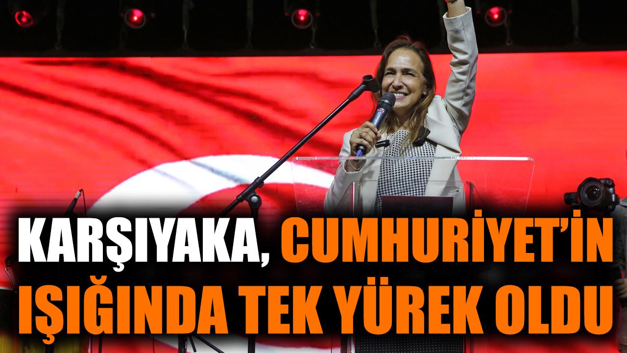 Coşkulu kalabalığa seslenen Karşıyaka Belediye Başkanı Yıldız Ünsal “Bu topraklarda bundan tam 102 yıl önce, bir millet küllerinden doğdu. Esareti reddetti, bağımsızlığı seçti. Ve Gazi Mustafa Kemal Atatürk’ün önderliğinde, “Egemenlik kayıtsız şartsız milletindir!” diyerek Cumhuriyetimizi ilan etti. Bizler, bu büyük devrimin yılmaz emanetçileriyiz. Ve bu emanete sahip çıkmak, her birimizin boynunun borcudur! Biz Karşıyakalılar, Atatürk’ün “Benim manevi mirasım bilim ve akıldır” sözünü rehber edindik. Her sokağımızda onun izi, her yürekte onun sevgisiyle yaşıyoruz. Bugün Edirne’den Hakkâri’ye, Sinop’tan Hatay’a kadar milyonlarca yürek aynı heyecanla çarpıyor. Çünkü Cumhuriyet bizim, bu vatan hepimizin! Bu büyük mirası daha da ileriye taşımaya, Atatürk’ün gösterdiği çağdaş uygarlık yolunda kararlılıkla yürümeye, çocuklarımıza daha aydınlık bir Türkiye bırakmaya söz veriyoruz” diye konuştu.