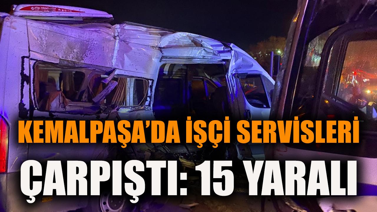 İzmir’in Kemalpaşa ilçesinde iki işçi servisinin çarpışması sonucu meydana gelen kazada ilk belirlemelere göre 15 kişi yaralandı.