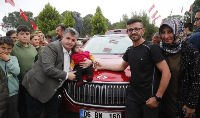 Hükümet Konağı önüne getirilen TOGG Kınık'ta 7'den 70'e herkesin ilgi odağı oldu. "Anadolu kırmızısı" rengi olarak geçen araca ilgi gösterenler TOGG ile hatıra fotoğrafı çektirdi.