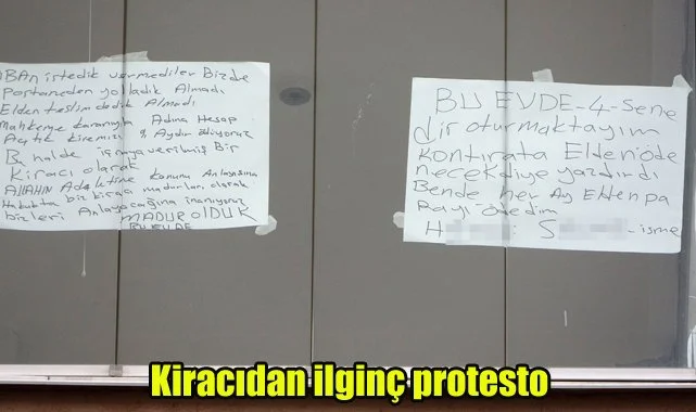 Dört yıldır oturduğu dairesinde ev sahibi tarafından haksızlığa uğradığını belirterek çıkarıldığını iddia eden kiracı Hasan Şengün, yaşadığı süreci kâğıtlara yazarak, çıkarıldığı evin pencerelerine astı. Şengün, "Ben apartmanın balkonunda kâğıtları yapıştırdım. Kendimi ifade etmek için bunları yaptım. Ben bu apartmanda 15 sene kaldım. 7 sene başka dairede, 4 sene de en son oturduğum dairemde kaldım. Ev sahibim olan kadın ‘kirayı elden vereceksin' dedi, ben de hep elden verdim kiralarımı. Ev sahibimle çok samimiydik. Biz de samimiyetine dayanarak 3 sene kirasını ayın 15'inde elden verdik. Sonra kiramı 8 bin lira yapacağını söyledi. Biz de ‘2 bin lira veya 4 bin lira yapalım' dedik, ancak onlar 8 bin liradan bahsettiler. Biz de bunu veremeyeceğimizi söyledik ama bunlar bizi dışarı atmak istediler. Gördüğünüz gibi bu apartmanda ben de kendimi ifade etmek için böyle bir yola başvurdum. Kimseyle burada kavga etmedim, tartışma yaşamadım. 15 sene kaldım burada. Beni evladı gibi seven ev sahibim, oğlunun ağzına bakarak beni evden çıkarttı. Ben adalete güveniyorum, mağduruz. Psikolojimiz bozuldu eşimle benim. Çocuklarımın psikolojisi bozuldu. Kağıtlarda 'Ben kiramı ödedim, ben mağdur oldum, hiçbir kiracı elden kirayı vermesin. Ben haciz edildim' yazıyor" dedi.