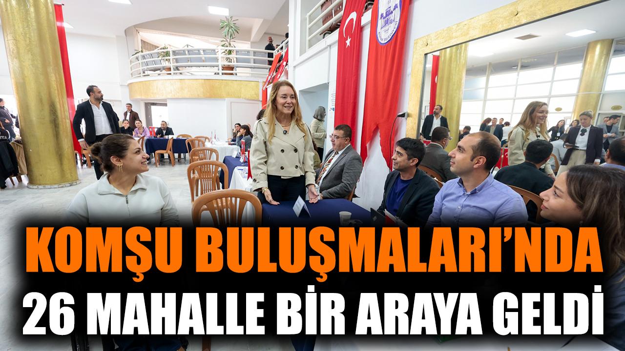 Konak Belediye Başkanı Nilüfer Çınarlı Mutlu’nun, Konaklılarla buluşarak taleplerini birinci ağızdan dinlediği ve çözüm yollarını vatandaşla birebir konuştuğu Komşu Buluşmaları üçüncü kez gerçekleşti. Dr. Selahattin Akçiçek Kültür Merkezi’nde, belediyenin tüm bürokratlarının, müdür ve müdürlük birimlerinin hazır bulunduğu buluşmada, Konak ve Eşrefpaşa bölgelerinde yer alan 26 mahalle bir araya geldi. Buluşmaya vatandaşlarla birlikte muhtarlar da katıldı. Başkan Mutlu, Konaklı komşularını tek tek konuk ederek taleplerini dinledi, sorunlara anında çözüm için vatandaşları ilgili müdürlüklerin masalarına bizzat kendisi götürerek gerekli işlemlerin hızla yapılması için talimat verdi.