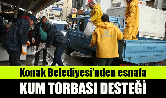 Konak Belediye Başkanı Abdül Batur, İzmir’de günlerdir etkili olan sağanak yağış ve fırtına sebebiyle esnafın daha fazla mağduriyet yaşaması için belediye ekiplerini seferber etti. Özellikle Alsancak bölgesinde deniz seviyesinin de yükselmesiyle işyerleri su alan esnafa hem temizlik hem işgaliye desteği sağlayan Konak Belediyesi, yinelenen sel, su baskını, yıldırım, fırtına uyarısının ardından esnafa kum torbası dağıttı. Kordon ile paralel cadde ve sokakları başta olmak üzere bölgedeki esnafa 1000’in üzerinde kum torbası verildi.