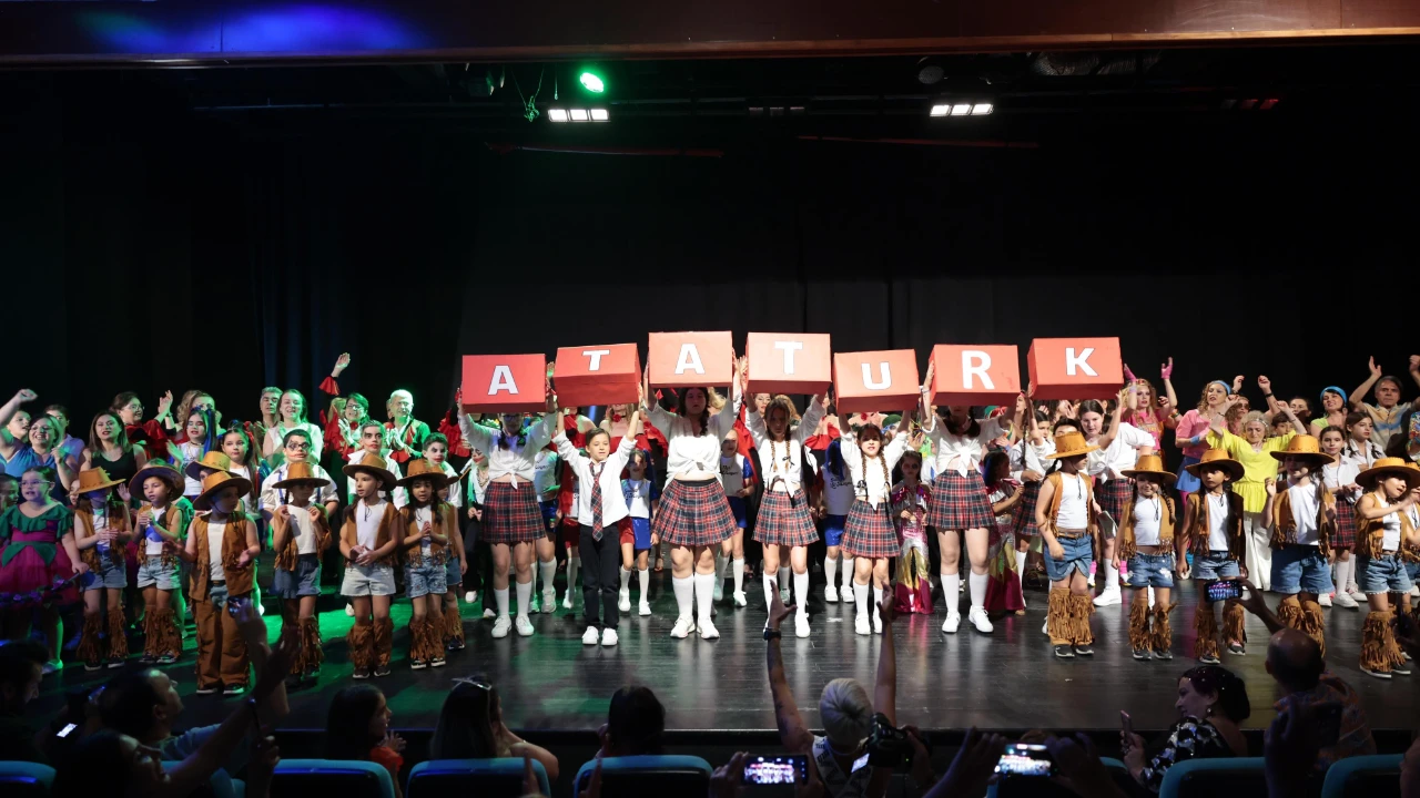 Konak Belediyesi’nin çocuk kursiyerleri tarafından sahnelenen müzik dinletisi, renkli görüntülere sahne oldu. Salonu dolduran izleyiciler, miniklerin performanslarına coşkulu alkışlarla eşlik etti. Roman Kültür Orkestrası’nın kulakların pasını silen ritimlerinin yanı sıra Çok Sesli Çocuk Korosu’nun seslendirdiği “Parla”, “Ey Özgürlük”, “Güzel Günler Göreceğiz” ve “İzmir Marşı” büyük alkış topladı. Çocuk ve yetişkin kursiyerlerin yıl boyunca hazırlandıkları dans gösterileri ise göz doldurdu. Renkli kostümleriyle salonda şölen havası estiren kursiyerler, gösterinin finalinde anlamlı bir koreografiyle sahnedeydi. Manifest grubunun “Arıyo” şarkısının sonuna eklenen “Hak, Hukuk, Adalet” sloganıyla sosyal medyada bir akıma dönüşen dansı sahneye taşıyan kursiyerler, ellerinde ise “Mustafa Kemal Atatürk” yazılı dövizler taşıdı. O anlar salonu tıklım tıklım dolduran izleyiciler tarafından dakikalarca ayakta alkışlandı.